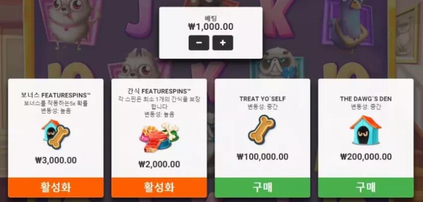 간식심볼은 와일드 심볼이자 첫번째 프리스핀에 진입 할 수 있는 스캐터 역할을 합니다.